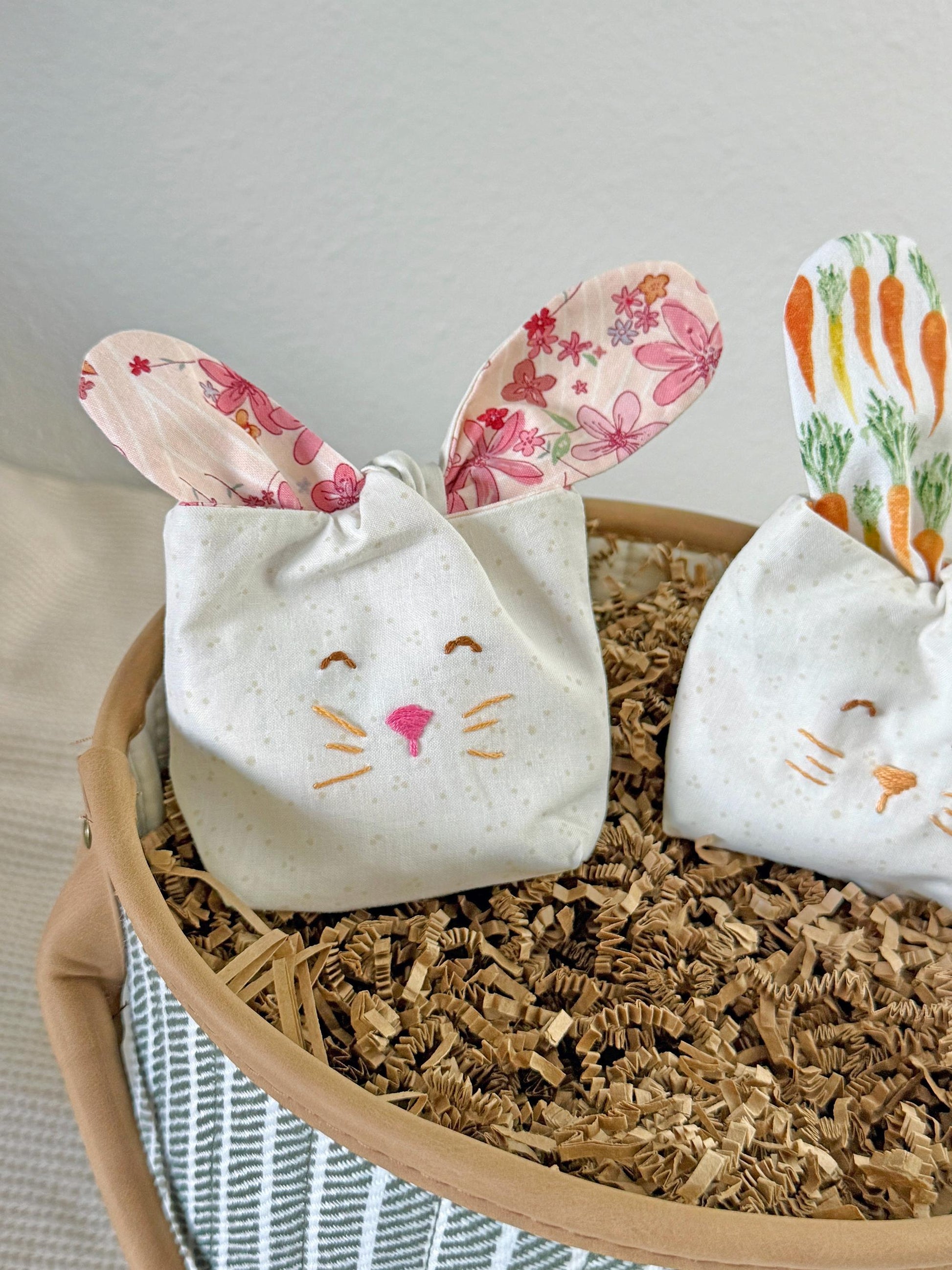 Sew your own bunny ear treat bag - this is an INSTANT DOWNLOAD PATTERN This pattern is for a fabric bunny ear bag. The easy sewing pattern makes the perfect little gift basket, filled with a few favorite treats or toys.