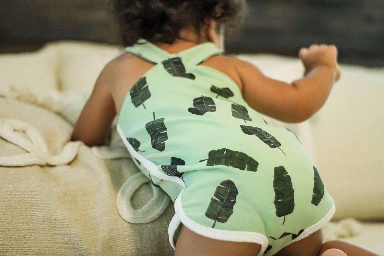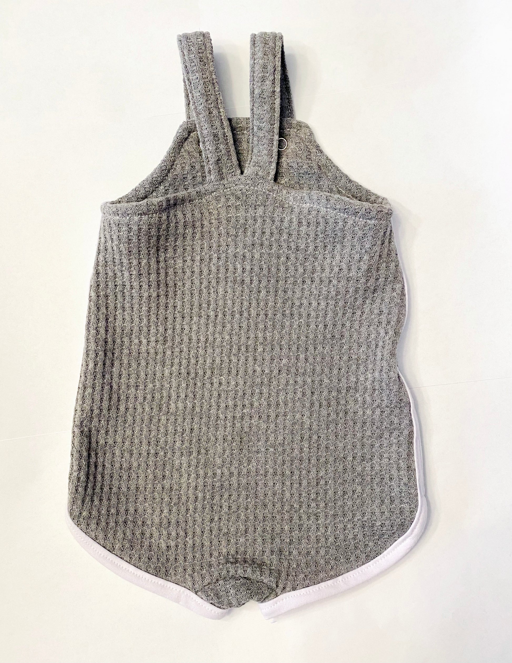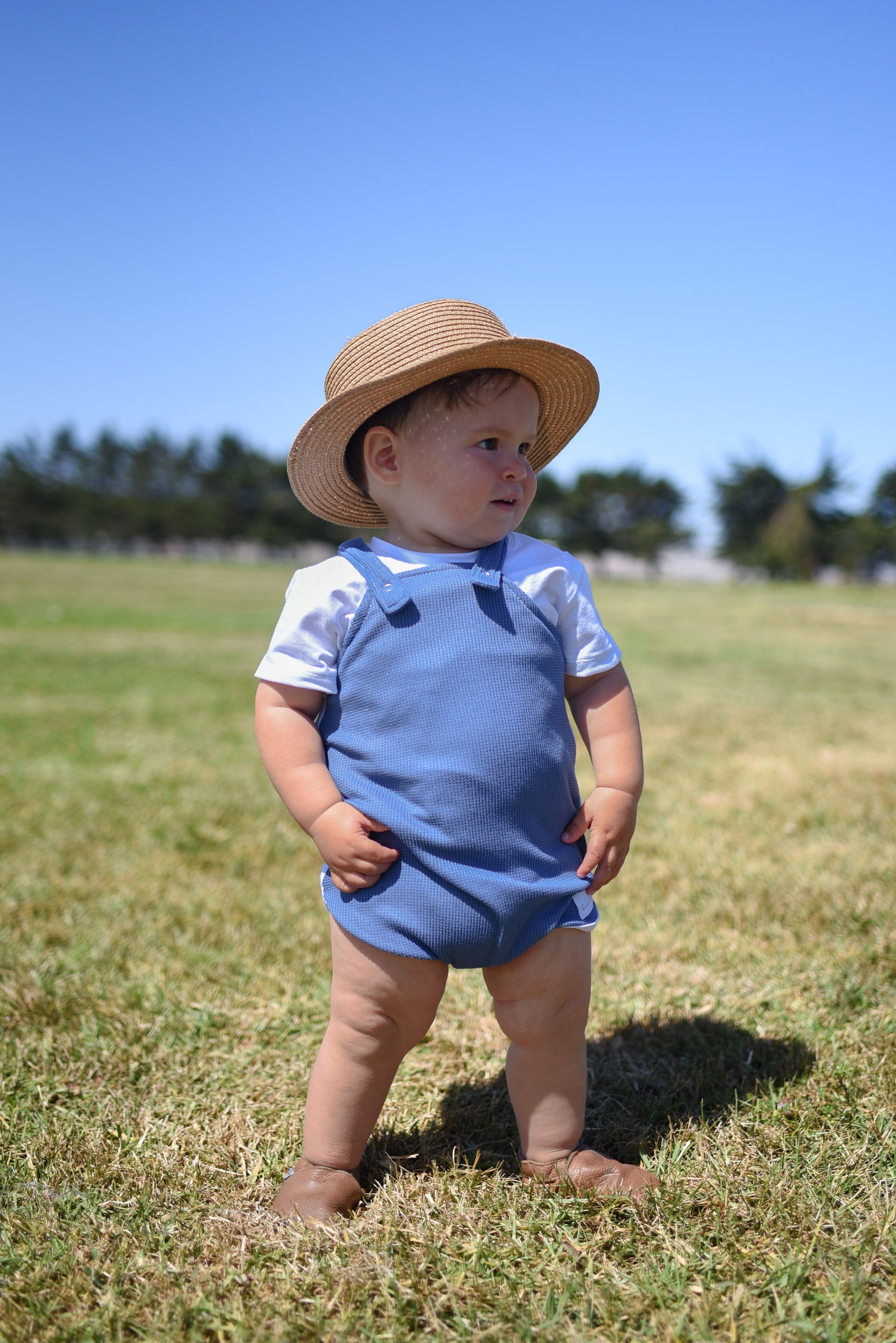 The offshore Overalls pattern is offered in sizes 0-3 months through child size 6. The overalls feature binding along the side seams and legs, and classic overall straps secured inside the top facing. Use snaps or buttons to secure the straps to the front.