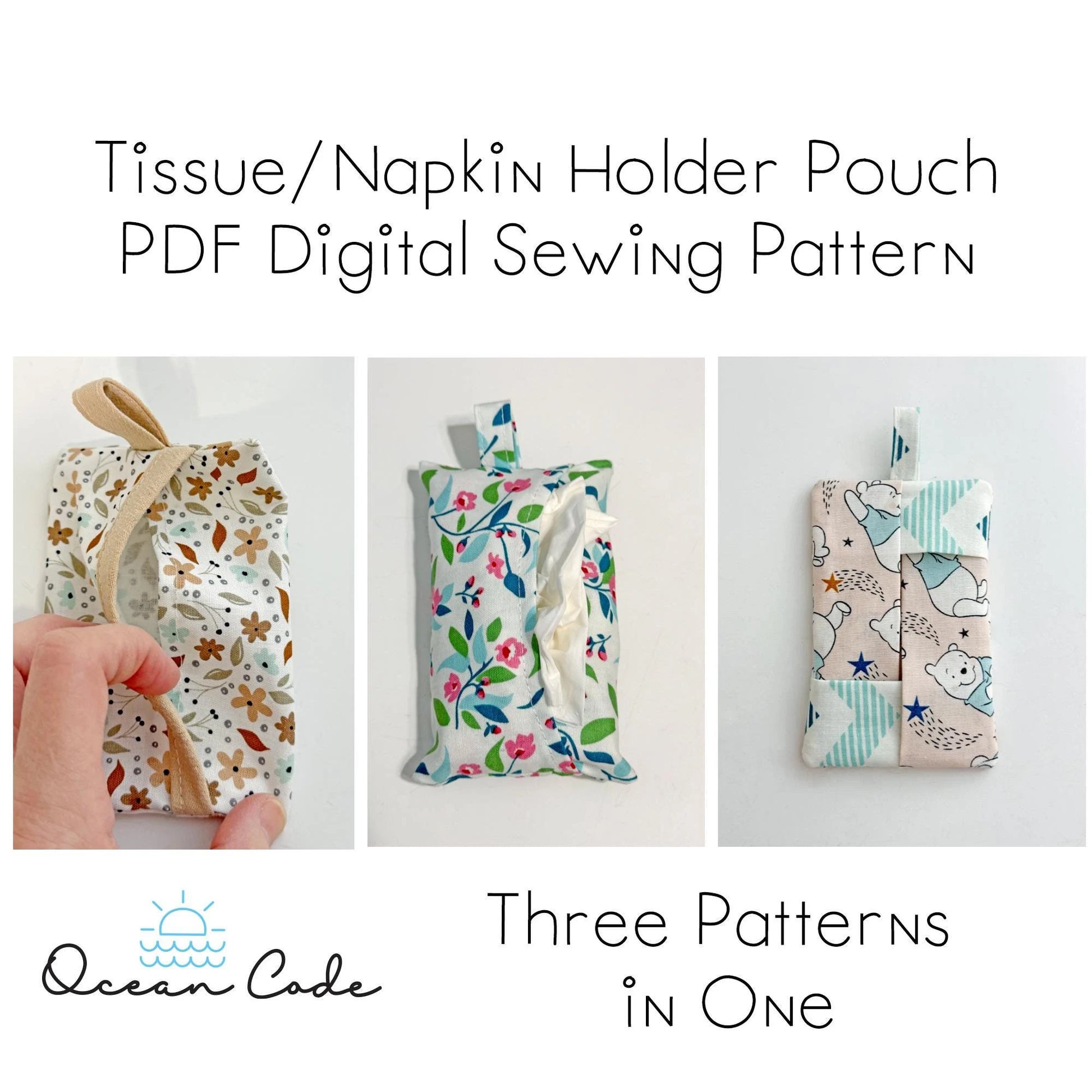 3 choices and styles are included - Make your own Tissue/Napkin pouch. This is a digital PDF sewing pattern. No physical item will be mailed to you.